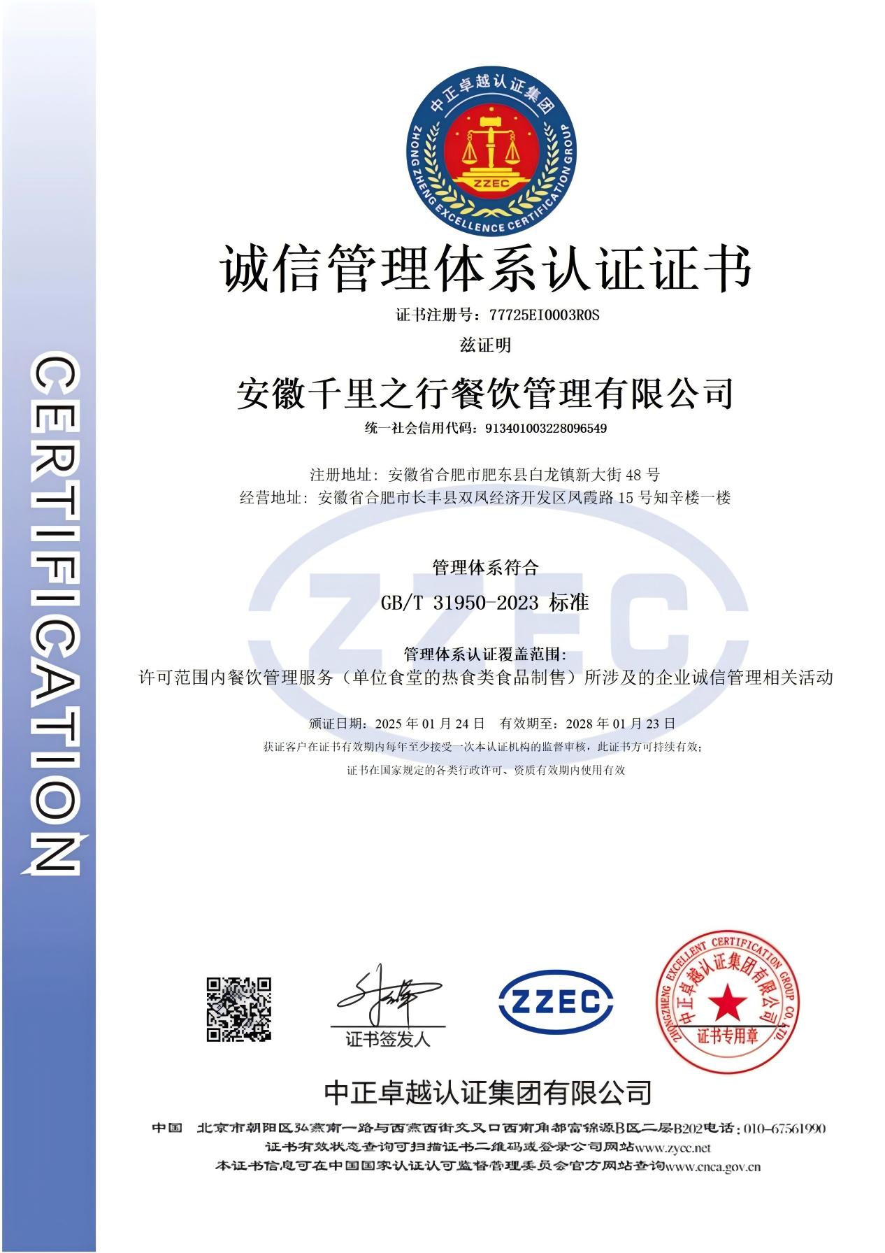 • 诚信管理体系认证证书